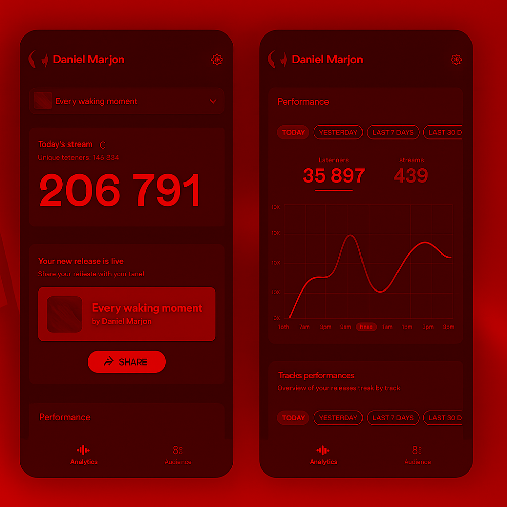 • Analizar tus métricas: streams, oyentes diarios, ciudades y países donde más te escuchan, canciones más populares, etc.
